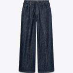 Arkası elastik, ayarlanabilir bağcıklı, yüksek belli jean. Ön cepli. Geniş paça.