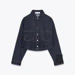 Yaka detaylı, uzun kollu gömlek. Ön yama cepli. Önü metal düğme kapamalı.