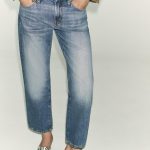 شلوار جین متوسط با پنج جیب. دارای پاچههای صاف و کوتاه. بسته شدن جلو با زیپ و دکمه فلزی.