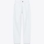 جین با کمر بلند و پاچههای گشاد، تا مچ پا و راحت. دارای پنج جیب و بسته شدن جلو با زیپ و دکمه.