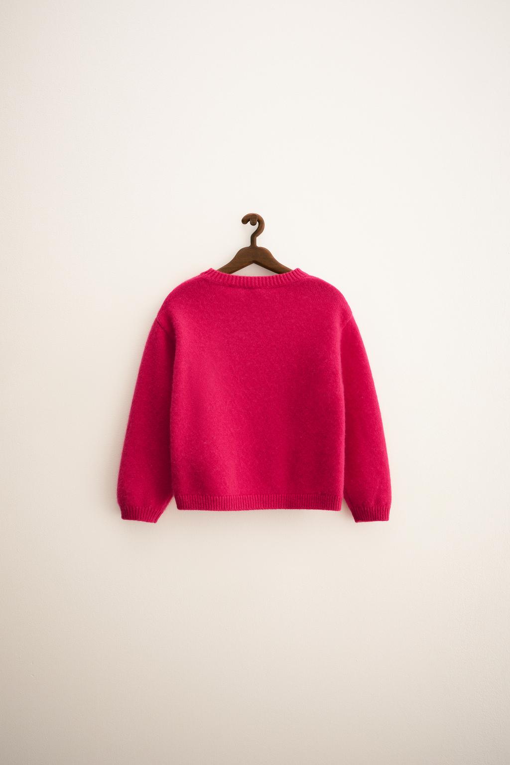 سویشرت کشمیر با یقه راهراه و راحت از برند زارا (بچه گانه) - سایز 5 110cm, سرخابی (05059501)