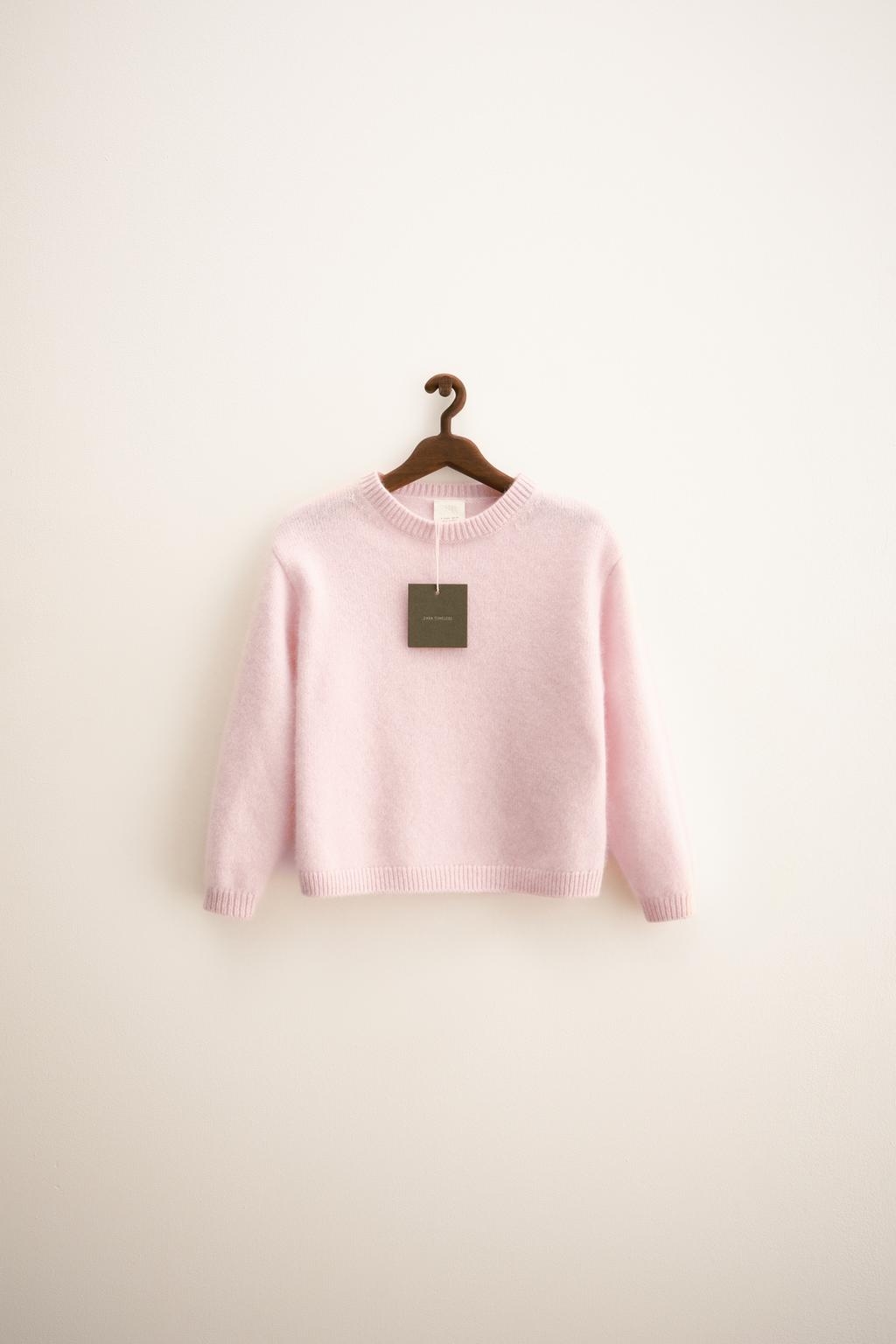 سویشرت کشمیر با یقه راهراه و راحت از برند زارا (بچه گانه) - سایز 4 104cm, صورتی (05059501)