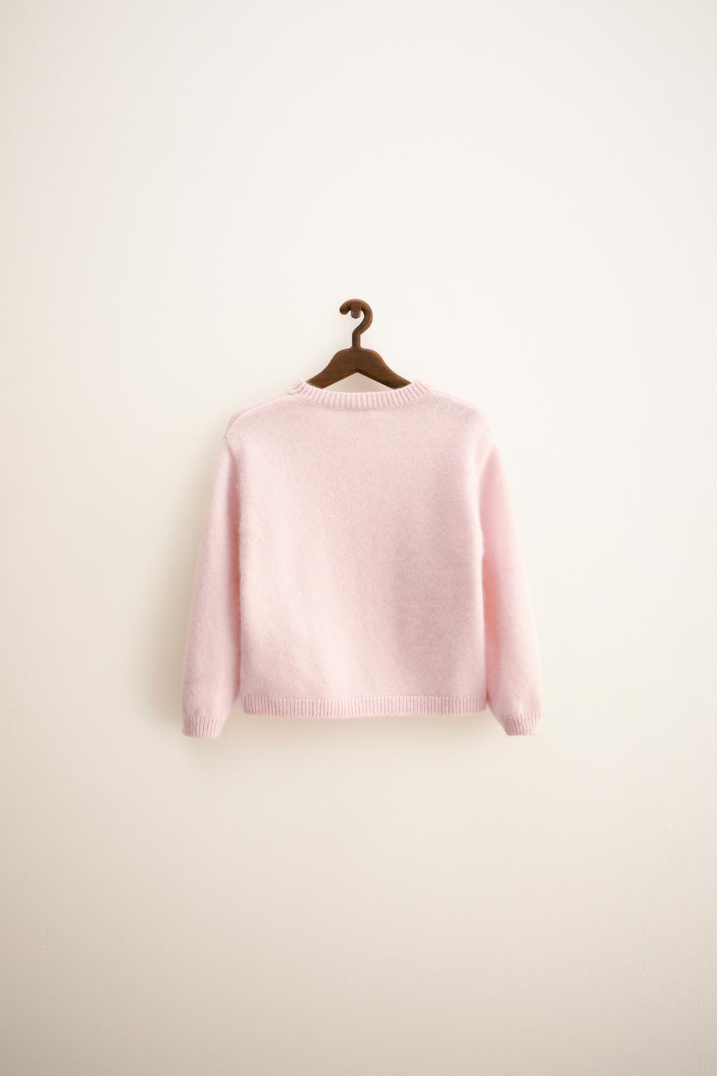 سویشرت کشمیر با یقه راهراه و راحت از برند زارا (بچه گانه) - سایز 2 90cm, صورتی (05059501)