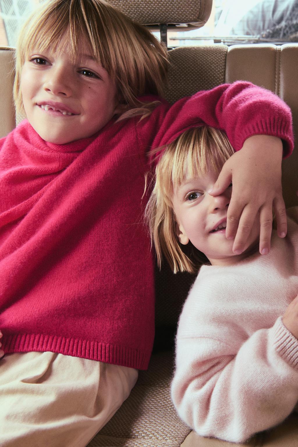 سویشرت کشمیر با یقه راهراه و راحت از برند زارا (بچه گانه) - سایز 4 104cm, سرخابی (05059501)