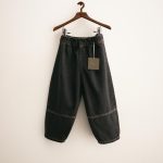 شلوار جین بالون کسم از پارچه پنبهای تولید شده است. این شلوار برای افزایش راحتی دارای کمربند الاستیکی است. در قسمت پشت، جزئیات جیب یقهای و در قسمت جلو، دوختهای رنگی متضاد وجود دارد.