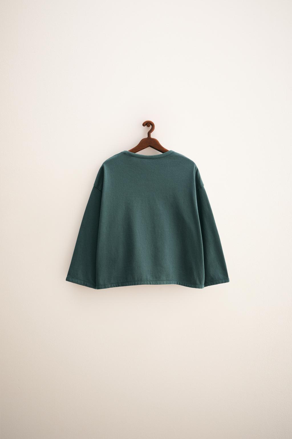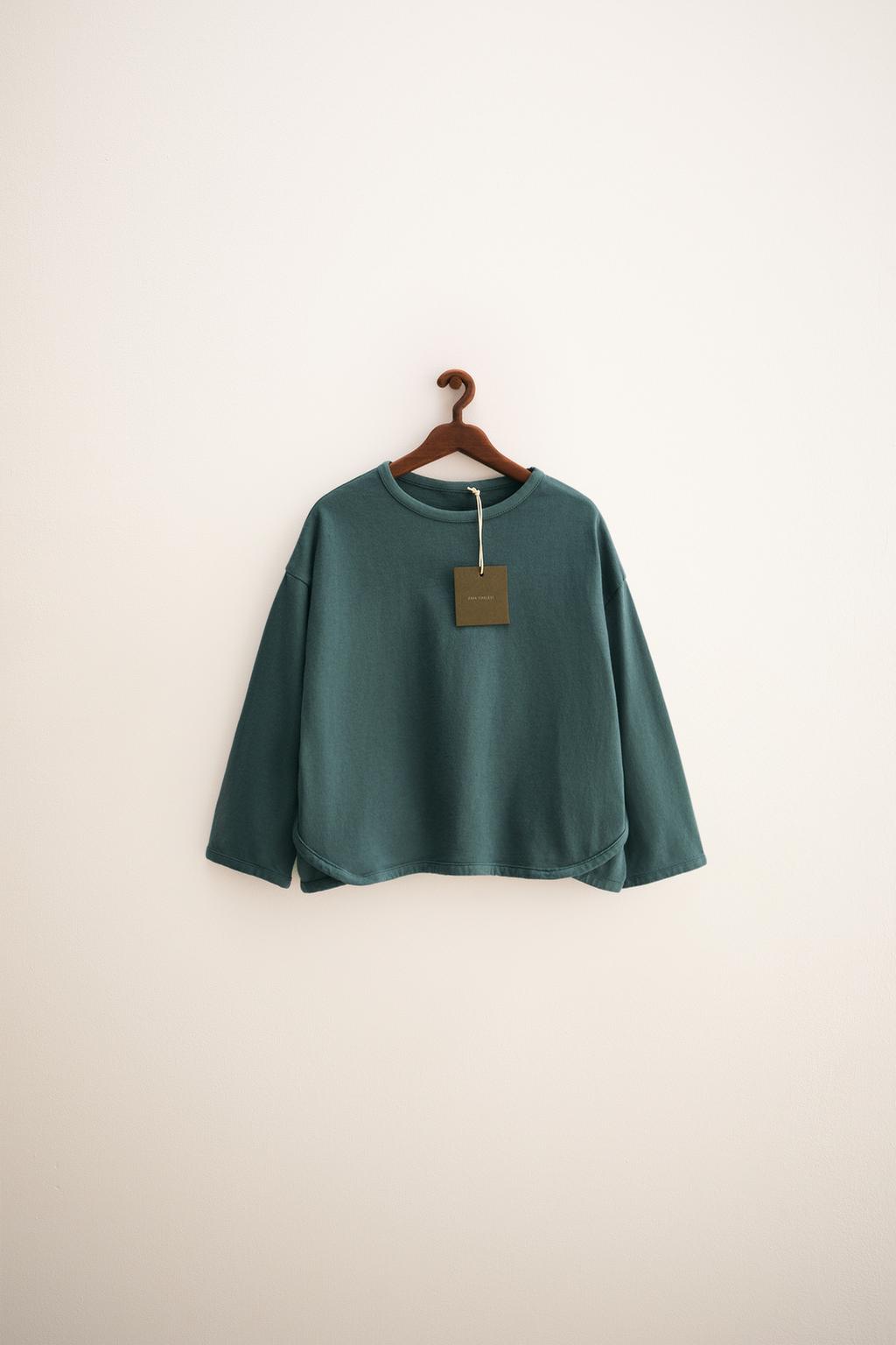 - Pamuklu kumaştan, bol kesim tişört. Bitişlerde, uyumlu, kontrast renkli biye detayı bulunur.