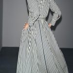 - Pamuk iplikten üretilmiş elbise. Gömlek yakalı ve manşetli uzun kollu, V yaka. Önde kapaklı yama cepler. Aynı kumaştan bağcıklı ayarlanabilir kemer. Etek ucu kloş kesimli. Önden gizli düğme kapamalı.
