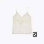 بلوز با یقه V، نازک و دارای بندهای قابل تنظیم. با تزیینات دانتل همرنگ.