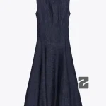 پیراهن میدی بدون آستین با یقه گرد. دامن به شکل A طراحی شده است. پشت پیراهن دارای دوخت و بسته شدن با دکمه است.