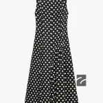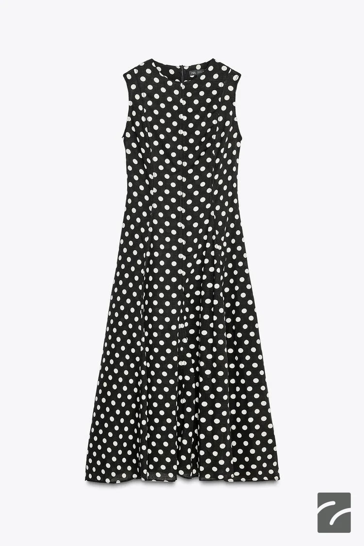 این پیراهن میدی از الیاف حاوی 10% کتان تولید شده است. دارای یقه گرد و بدون آستین است. دامن به صورت A شکل طراحی شده و زیپ پشتی به صورت مخفی دوخته شده است.