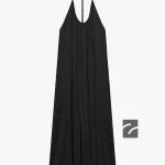 Viskoz iplikten üretilmiş, iç giyim tarzı elbise. Yuvarlak yakalı ve sırtta çapraz ince askılı. Etek ucu kloş kesimli.