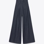 جین با کمر بسیار بلند و پاچه‌های عریض از مجموعه زارا وومن. این جین دارای جزئیات دوخت در جلو و زیپ مخفی در قسمت پشت است.