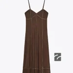 این لباس از نخ ویسکوز تهیه شده است. دارای یقه گرد و بندهای نازک قابل تنظیم است. جزئیات با اپلیکهای مرواریدی دارد و دارای آستر داخلی میباشد.