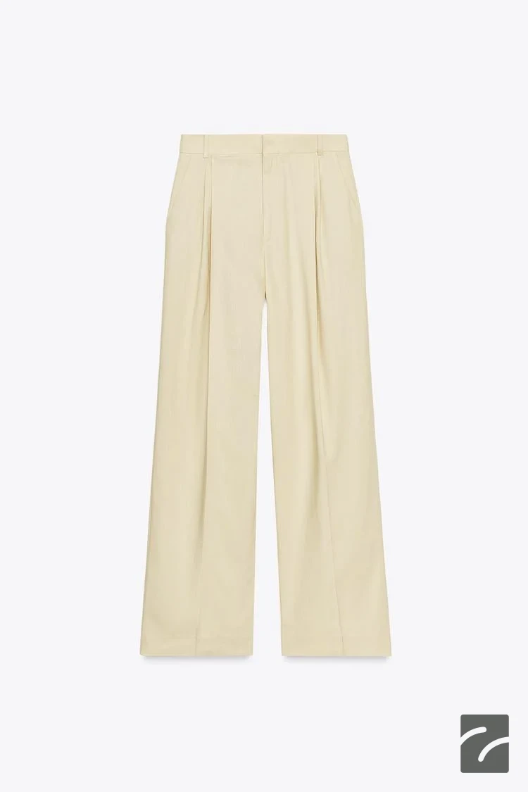 Viskoz karışımlı iplikten üretilmiş, orta bel pantolon. Beli kemer köprülü. Yan cepli. Önü pens detaylı ve ütü izli. Fermuar, düğme ve metal kancalarla ön kapamalı.