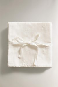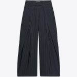 شلوار با کمر بلند و پل کمری. جیبهای مخفی در کنارهها. دارای جزئیات دوخت ضربدری. پاچههای گشاد. بسته شدن جلو با زیپ، دکمه داخلی و قفل فلزی.